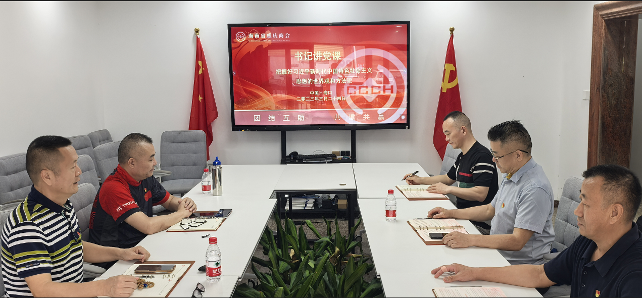 2023年3月24日,海南省重庆商会党支部于商会党建室成功召开党支部大会暨专题党课学习活动,集中组织学习了习近平新时代中国特色社会主义思想的世界观和方法论,并就...