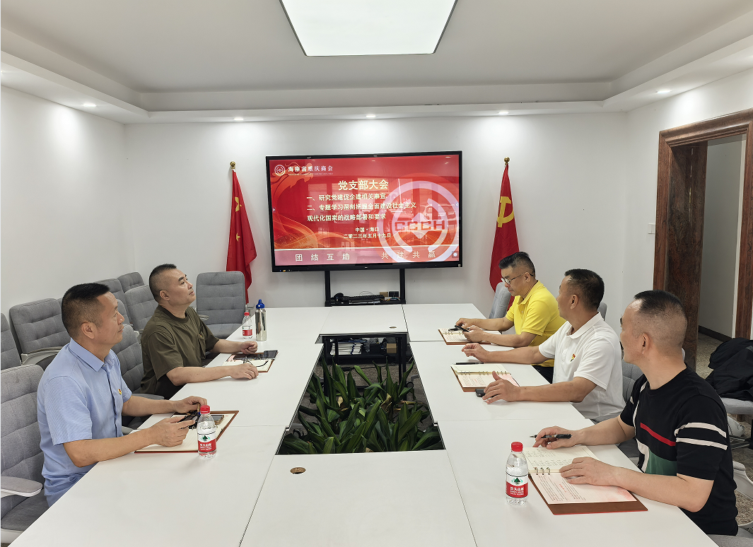 2023年5月19日,海南省重庆商会党支部在商会党建室召开党支部大会,围绕“党建促企建”及“全面建设社会主义现代化国家的战略部署”两大主题展开深入学习与研讨。会...